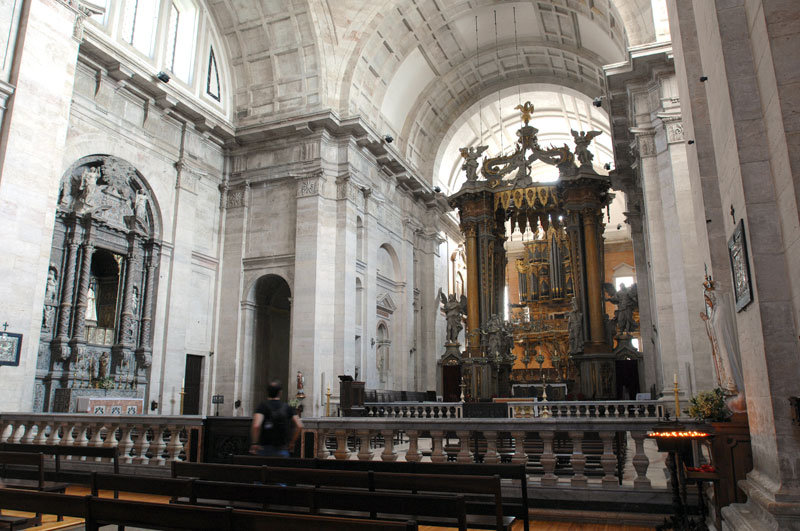 Por isso não é de admirar a vastidão da escadaria e a imponência da fachada altíssima, ao tamanho da gula dum clero que ganhava também tanto com a glória da Expansão. No interior há um altar barroco por Ludovice, só possível com o dinheiro que as colónias permitiam, que uma coisa destas não se faz num fim-de-semana com dois trolhas.