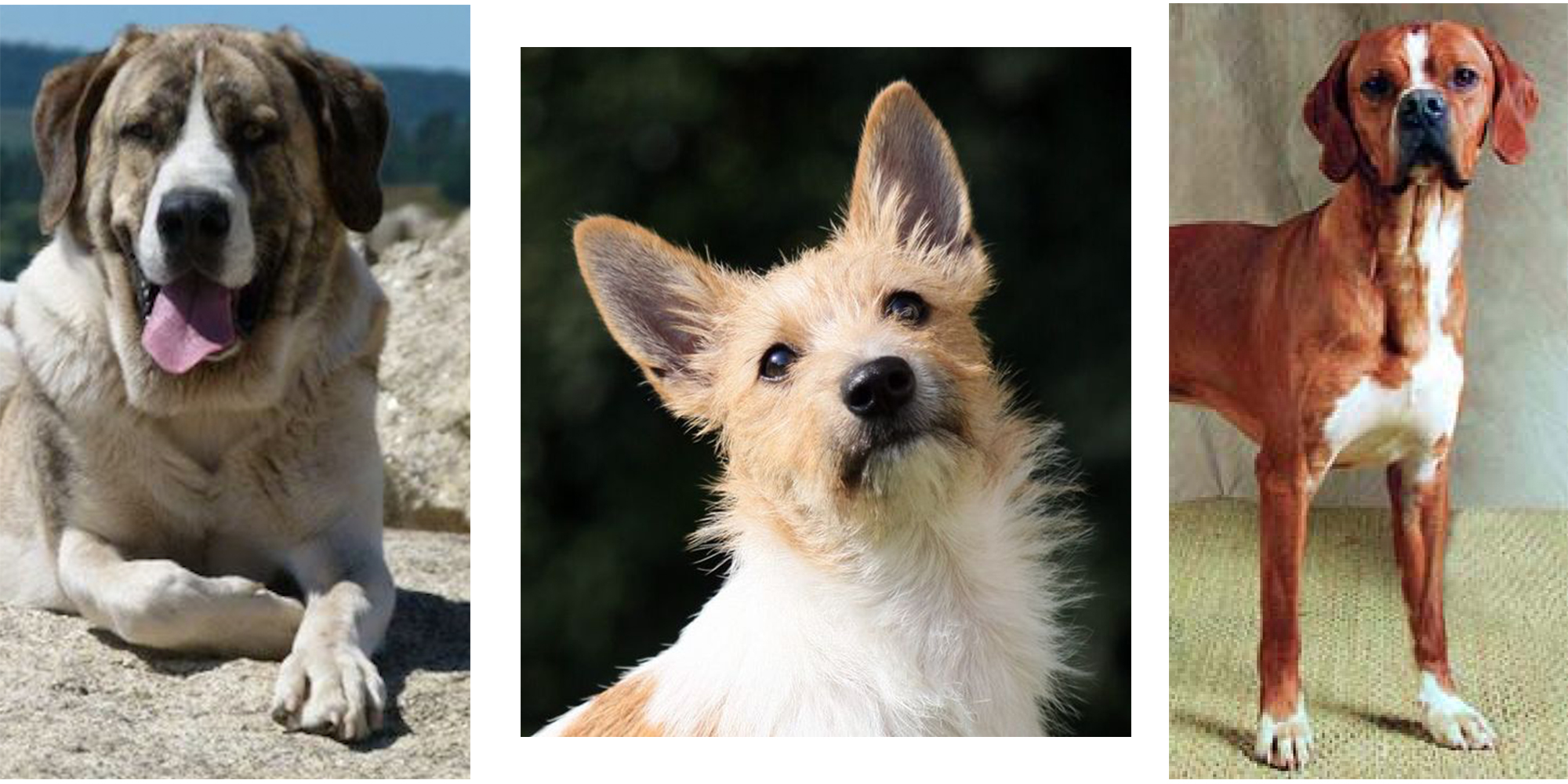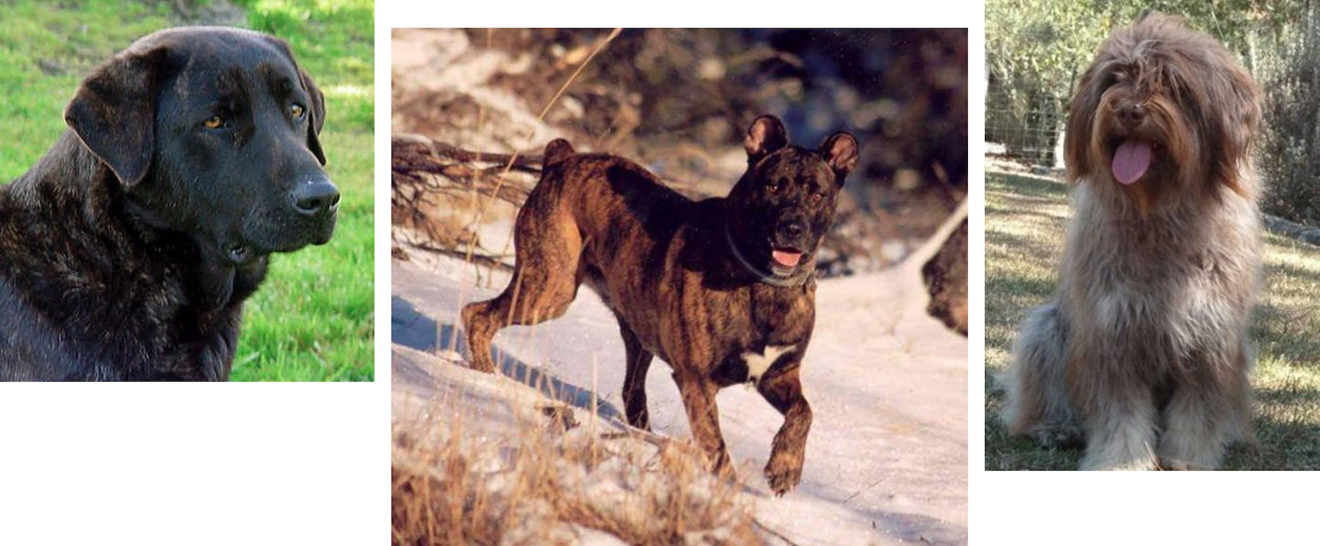 Da esquerda para a direita: Rafeiro Alentejano, Podengo Português e Perdigueiro Português