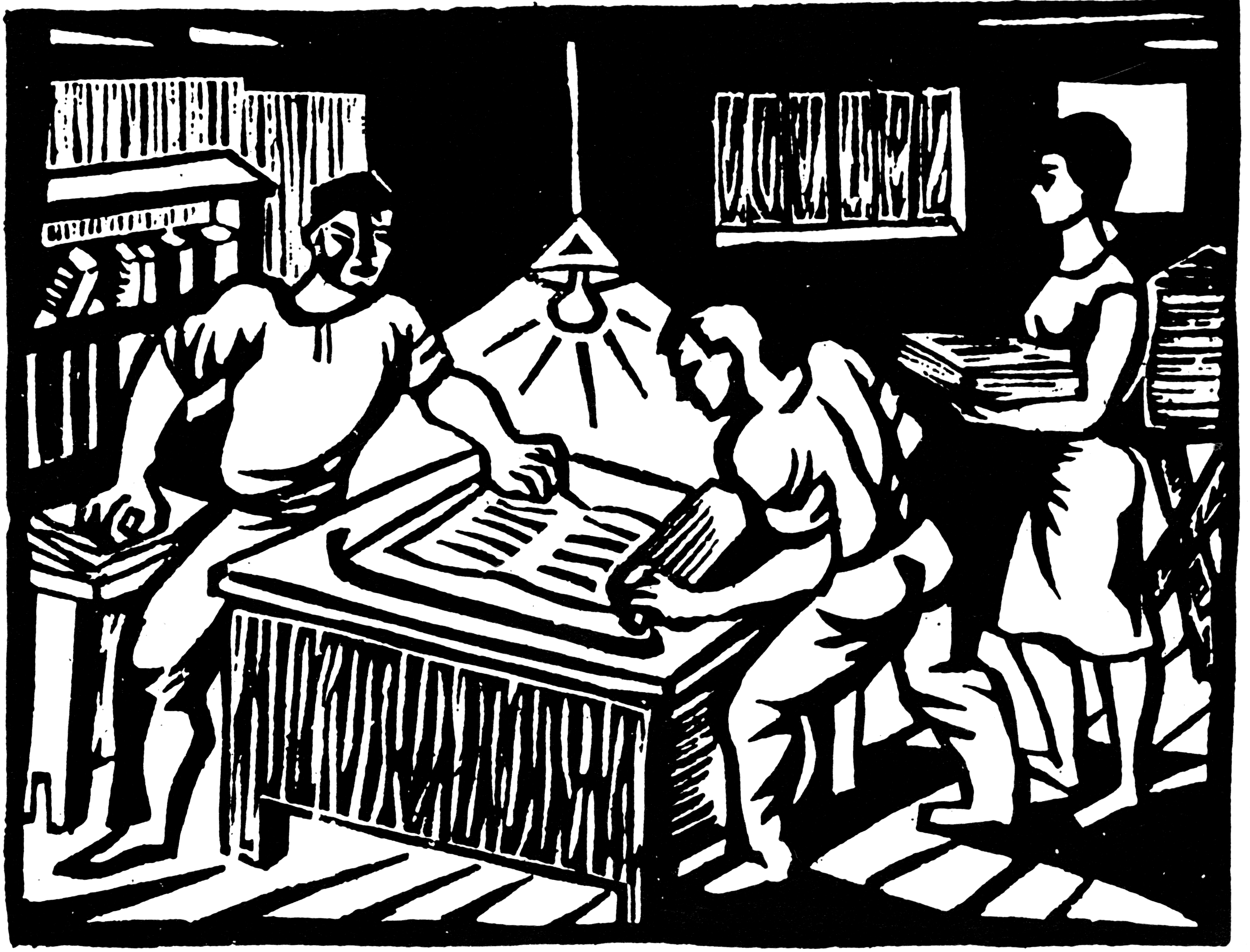 Foto ilustrativa da mostra no Museu do Aljube: "Tipografia Clandestina", desenho de José dias Coelho, realizada para o jornal Avante! nº304, 1ª quinzena de agosto de 1961, GES / PCP, gentilmente cedida pela Direção do Museu