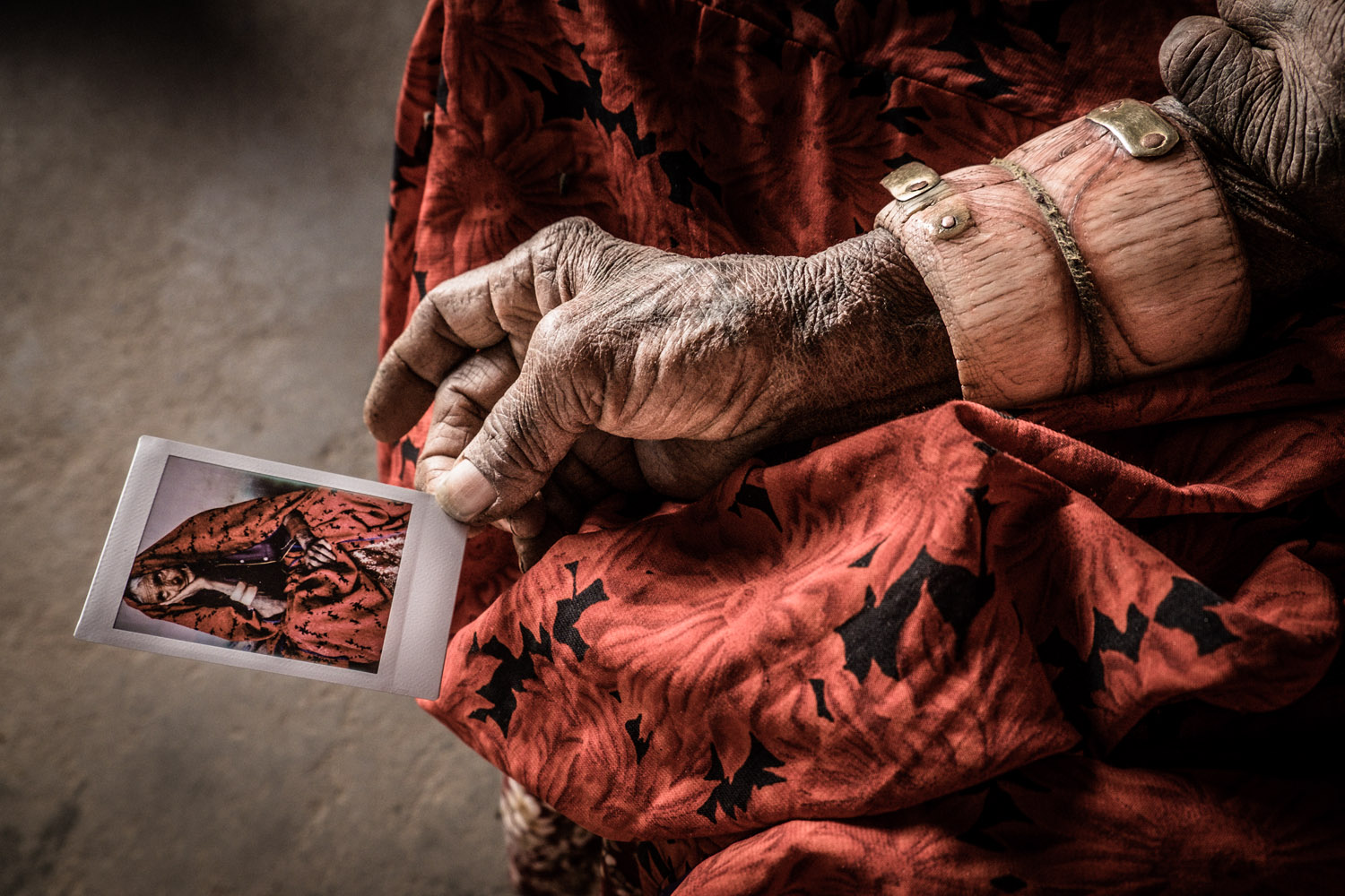Ana titulou esta imagem de “O peso da tradição” e conta ter sentido o calor humano de uma Ásia genuína, fora dos roteiros turísticos, onde viu provavelmente aqueles que serão os últimos vestígios culturais de várias minorias étnicas. «Por exemplo, as mulheres da etnia Patel mudam as vestimentas a partir do momento em que se casam. Algumas peças do vestuário ou dos acessórios que utilizam têm significados específicos. Ao que consta, utilizam vestidos vermelhos depois dos 50 anos. Antes disso, utilizam vestidos pretos. A senhora retratada é a última da família a manter a indumentária Patel. As gerações seguintes já não se interessam, preferem o estilo ocidental».