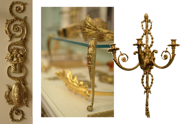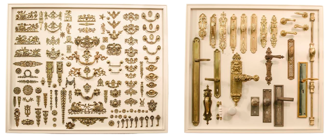 Algumas das peças são acabadas a ouro, para que o efeito final cumpra o seu desígnio, e cada porta ou móvel seja realmente especial e único.